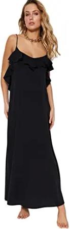 Damen Strandmode Maxi Basic Relaxed Fit Woven Kleid, Schwarz, 38