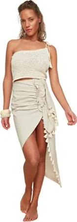 Damen Strandmode Maxi Rüschensaum Gewebter Rock, beige, 60