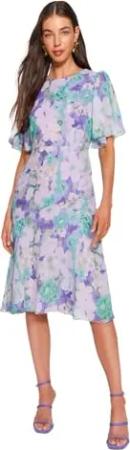 Damen Frauen Regular Fit Woven Midi A-Linie, Normale Passform, gewebtes Kleid, Violett, 38