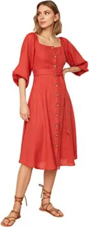 Damen Belt Dress, Ziegelrot, 36 EU