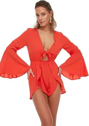 Damen Women Abstract Woven Jumpsuit Overall, Red, 62