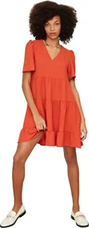Damen Wide Cut Dress, Orange, 38 EU