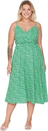 Damen Trendyol Woman Maxi Skater Rundhalsausschnitt Webstoff Kleid, Grün, M