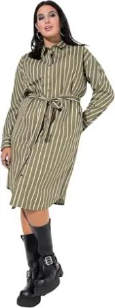 Damen große Größen Übergrößen Plus Size Hemdblusen-Midikleid, Oversized, Streifen Dunkles Olive 46+ 843716641-46+