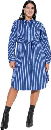 Damen große Größen Übergrößen Plus Size Hemdblusen-Midikleid, Oversized, Streifen Saphir 50+ 843716747-50+