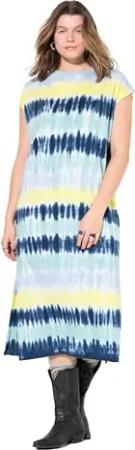 Damen große Größen Übergrößen Plus Size Jersey-Midikleid, leicht Oversized, Alloverprint, Schulter-Akzent. Aloe Vera 42+ 839951425-42+