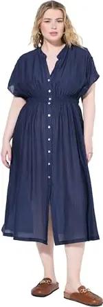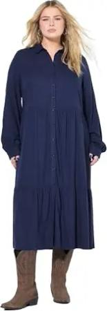 Damen große Größen Übergrößen Plus Size Midikleid, Oversize Shape, Musselin dunkel blau 42+ 842168741-42+
