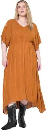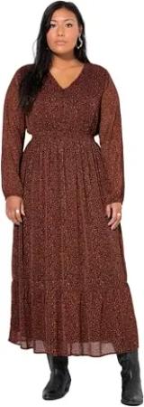 Damen große Größen Übergrößen Plus Size Kleid, Alloverprint, 3/4-Ärmel, Volants Zimt 54+ 839944542-54+