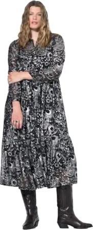 Damen große Größen Übergrößen Plus Size Maxikleid, doppellagig, Astroprint schwarz 50+ 844033100-50+