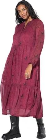 Damen große Größen Übergrößen Plus Size Maxikleid, doppellagig, Astroprint weinrot 54+ 844033344-54+