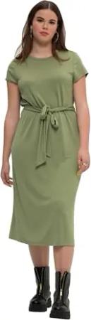 Damen große Größen Übergrößen Plus Size Midikleid, A-Line, Jersey, Rundhals, Halbarm salbeigrün 46+ 828687422-46+