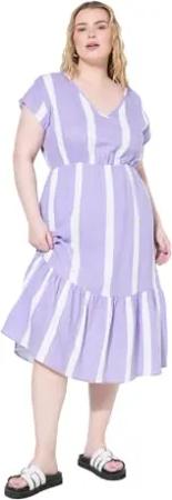 Damen große Größen Übergrößen Plus Size Midikleid, A-Line, Musselin, Streifen Lavendel 42+ 840537820-42+