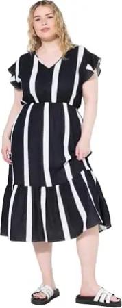 Damen große Größen Übergrößen Plus Size Midikleid, A-Line, Musselin, Streifen schwarz 46+ 840537100-46+