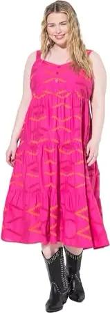 Damen große Größen Übergrößen Plus Size Midikleid, A-Line, Stickerei, Volants pink 42+ 840526520-42+