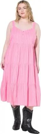 Damen große Größen Übergrößen Plus Size Midikleid, A-Line, Streifen, Volants rosa 46+ 840512512-46+