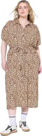 Damen große Größen Übergrößen Plus Size Midikleid, Hemdblusen-Style, Leo, Bindegürtel hell-beige 54+ 840517660-54+