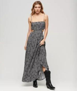 Damen Auffallendes Maxikleid mit Aussparung Dschungelfieber Schwarz 42