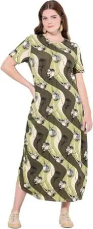 Damen große Größen Übergrößen Plus Size Jersey Maxidress with Seed Capsule Print