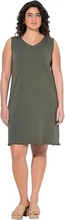 Damen große Größen Übergrößen Plus Size Kleid, A-Linie, Jersey, V-Ausschnitt, ärmellos olivgrau 58+ 793167200-58+