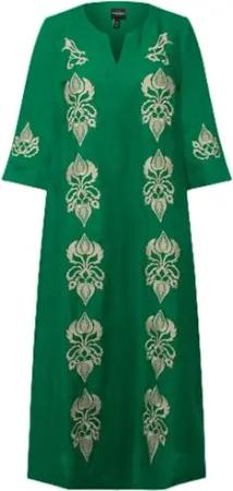 Damen große Größen Übergrößen Plus Size Leinen-Maxikleid, Stickerei, Tunika-Ausschnitt, 3/4-Arm grün 48 826651455-48