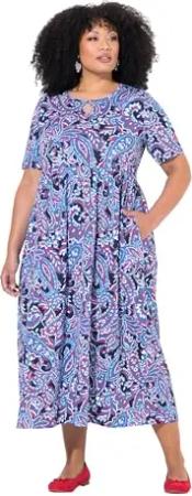 Damen, große Größen, Midikleid, Bedruckt, mit Knopf am Ausschnitt