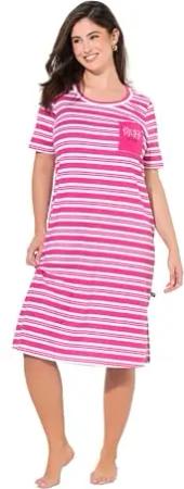 Damen große Größen Übergrößen Plus Size Nachthemd, Ringel, Rundhals, Halbarm, Brusttasche pink 46+ 834796540-46+
