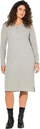 Damen große Größen Übergrößen Plus Size Rippjersey-Midikleid, Zipper, A-Linie, V-Ausschnitt, Langarm