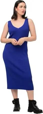 Damen große Größen Übergrößen Plus Size Strickkleid, Rippstrick, Slim, Midilänge, V-Ausschnitt, ärmellos azurblau 58+ 817591746-58+