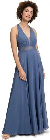 Damen Abendkleid mit V-Ausschnitt 42, Shiny Bluestone