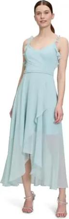Damen Abendkleid mit Volant 44, Shiny Bluestone