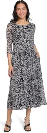 Damen Maxikleid mit Leoprint 40, Grau/Schwarz
