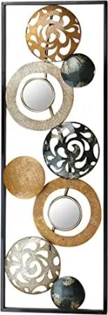 Metall-Wandbild Wanddeko Metallbild - mit Ringen, Kreisen und Spiegeln - 90x31 cm