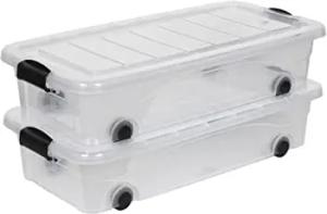 2 Stück Rollbox Unterbettbox mit Deckel 30 Liter in Transparent (einsehbar). Maße: 78 x 39,4 x 17,7 cm