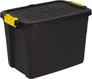 Aufbewahrungsboxen mit Deckel, TOUGH-Serie, bruchsichere Transportbox, Kunstststoffbox, Stapelboxen, Ordnungsboxen, Kiste in Schwarz, verschiedene Größen (60 Liter)