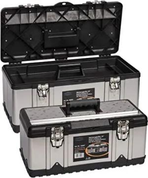 Profi Edelstahl Werkzeugkoffer Set : XXL 23" Profi Koffer 58 x 30 x 25 cm + XL 18" Profi Koffer 47 x 23 x 20 cm. Abschließbar, mit Werkzeugträger, Metallverschlüssen, Ablängvorrichtung.