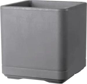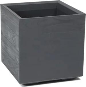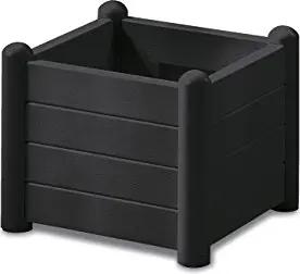 Quadratischer Pflanzkasten im Holz-Design aus Kunststoff in Anthrazit. Maße BxTxH in cm: 43 x 43 x 35 cm.