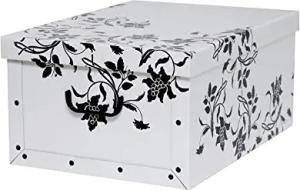 XXL Dekokarton, Aufbewahrungsbox mit Deckel und Griffen. 45 Liter Volumen. Verschiedene Motive (Barock Blume Weiß)