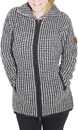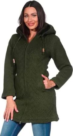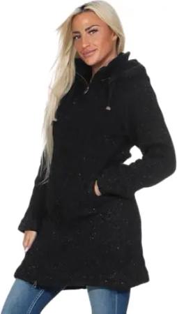 Damen Wolljacke Hippie Goa Strick mit Fleecefutter und Kapuze, Größe/Size:S