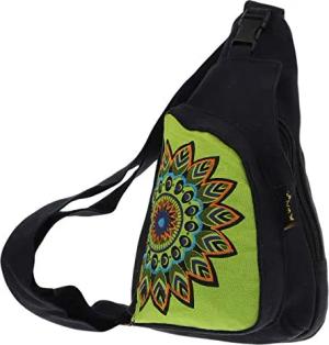 Hippie Goa Bodybag Schultertasche, Größe:S, Farbe:Schwarz/Lemon