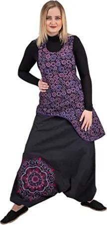 Ibiza Latzhose Haremshose Hose PSY Goa 70er Overall Hippie Boho, Größe:M, Farbe:Schwarz/Lila