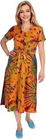 Kleid Batik Sommerkleid Baumwoll Kleid Boho Ibiza Geköpft Hippie Tie Dye, Größe:M, Farbe:Orange
