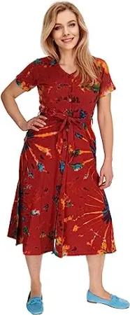 Kleid Batik Sommerkleid Baumwoll Kleid Boho Ibiza Geköpft Hippie Tie Dye, Größe:L, Farbe:Rot