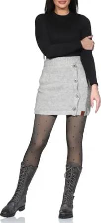 Strickrock kurzer Winter Rock mit klassischem Waffel-Muster Wolle Boho, Größe:XS,Farbe:Grau