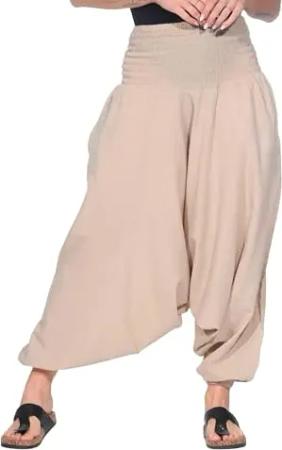Unisex Orientalische Haremshose Pluderhose Pumphose, Größe: Einheitsgröße, Farbe:Hanffarben