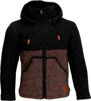Unisex Strickjacke Goa Wolle Bunte Patchwork Jacke Fleecefutter Hochkragen abnehmbarer Kapuze, Größe:S