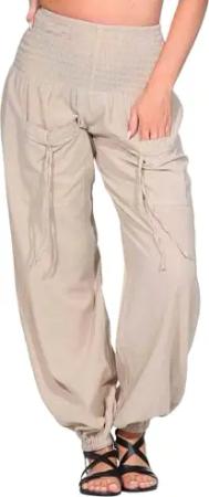 Yoga und Wellnesshose zum Wohlfühlen aus Baumwolle Hippie Goa Hose, Farbe:Hanffarben