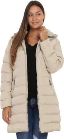 Daunenmantel, gesteppt, mit Kapuze, abnehmbar durch Reißverschluss, beige, XX-Large