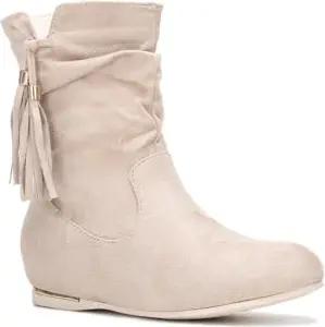 Stiefeletten aus Veloursleder mit Keilabsatz und runder Spitze, beige, 37 EU