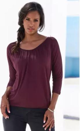 3/4-Arm-Shirt Damen Aubergine, Schwarz Gr.44/46