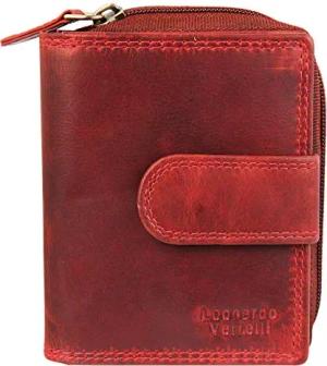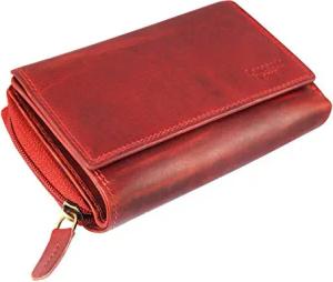 Damen – Geldbörse Echt Leder Leder RFID Safe 12,5x10 cm 3000092 (Rot)
